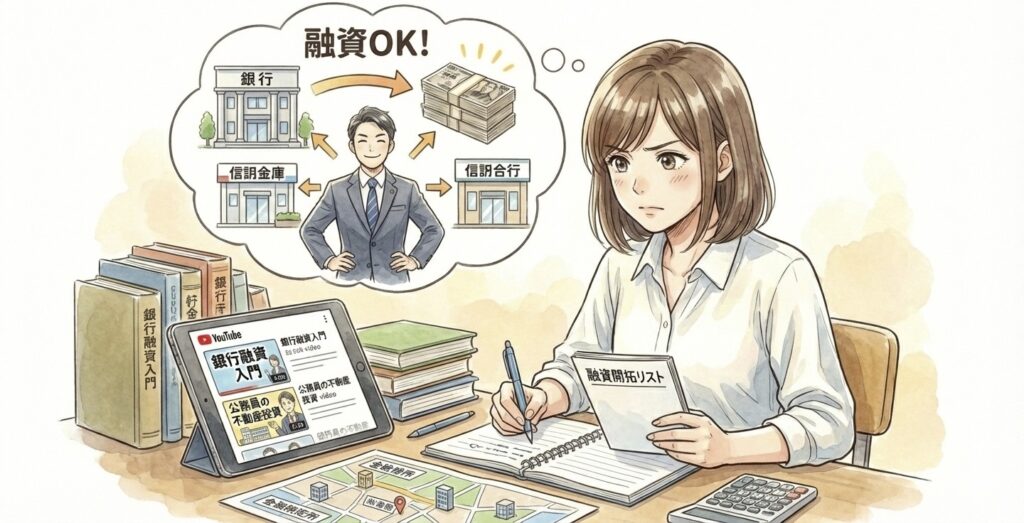 私は専業主婦のため、私個人で大きな融資は受けられそうにないので、公務員である夫の与信を最大限認めてくれる銀行、信金、信組を開拓をしていこうと思います。