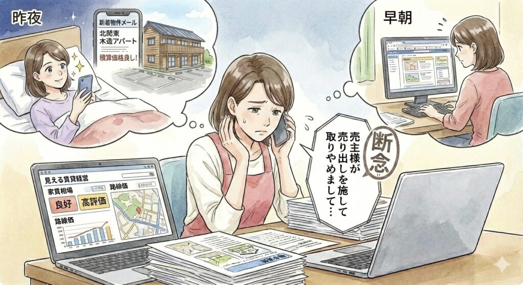 この物件に関しては、他にもたくさん買い付けがあったでしょうし、こればかりは縁がなかったということで、明日も、引き続き、精力的に活動していきます!